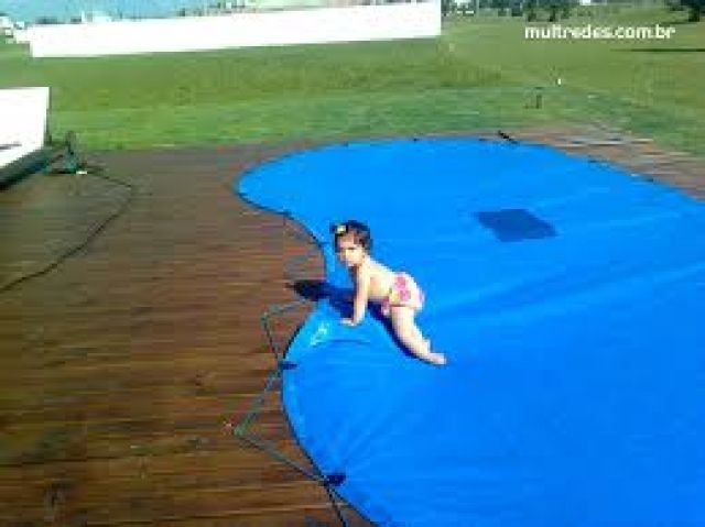 A capa de proteção, se instalada corretamente, além de reter sujeira torna-se uma barreira contra acidentes com crianças e animais domésticos. São soldadas com bainhas reforçadas, pinos em aço inox anti-ferrugem e buchas de PVC, fixação por fitas de tecido reforçado, ilhoses em latão niquelado próprio para piscinas com tratamento químico.
