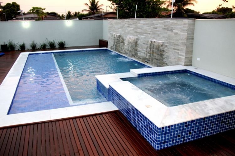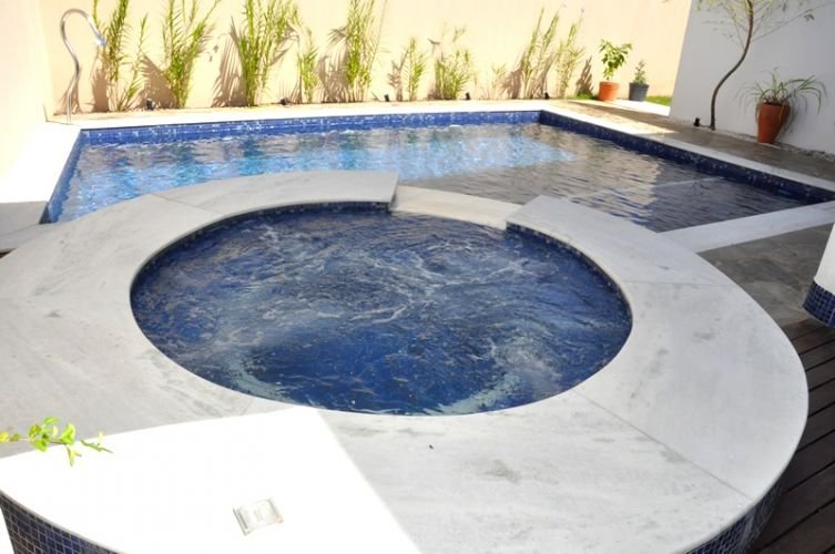 A piscina de Concreto Armado é a opção mais resistente, sofisticada e que mais agrega valorização ao imóvel, pois se agrega à sua área construída. É mais resistente porque é construída com blocos de concreto com malha de ferro no fundo e colunas de ferro nas paredes, e revestida com impermeabilizantes. Seu acabamento é feito em pastilhas ou azulejos.